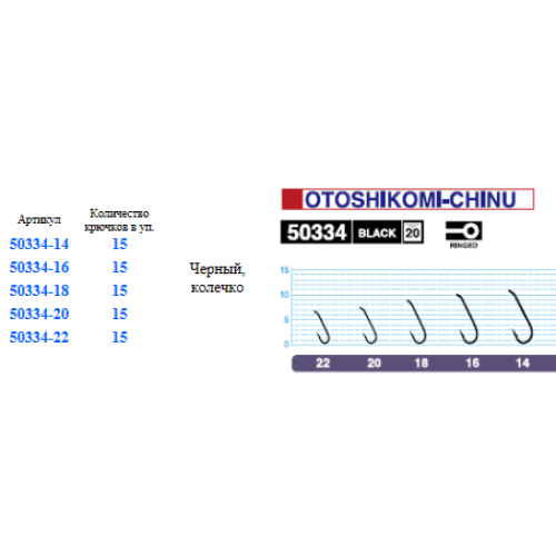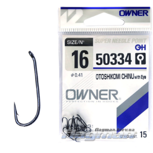 OWNER Otoshikomi Chinu - серия крючков миниатюрного размера. Толщина проволоки, из которой они изготовлены, сопоставима разве что с толщиной человеческого волоса. Тем не менее, это достаточно прочные крючки. Они имеют длинное цевье, круглый загиб, отогнутое внутрь колечко для привязки. Благодаря отогнутому ушку широко используются нахлыстовиками для вязания мушек. Кроме того, зимой этими крючками нередко дополнительно оснащают удочки с чертиками.