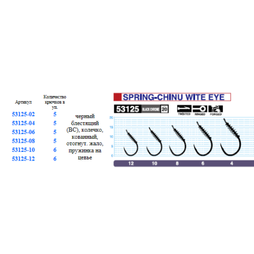 Благодаря оригинальному приспособлению в виде миниатюрной пружинки, искусно размещенной на цевье, крючки серии OWNER Spring SSN способны надежно удерживать такие насадки как тесто, болтушка, всевозможные каши, тем самым обеспечивая практически стопроцентную поклевку. Из других особенностей: нормальной длины цевье, круглый загиб, чуть отогнутое внутрь жало, черное антикоррозионное покрытие.