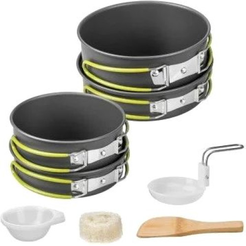 Набор походной посуды из анодированного алюминия, позволяет соединить в себе приготовление еды и напитков. Анодированный алюминий — это алюминий со специальным покрытием, получаемым электролитическим способом, которое защищает от окисления и служит защитой от механических повреждений.
